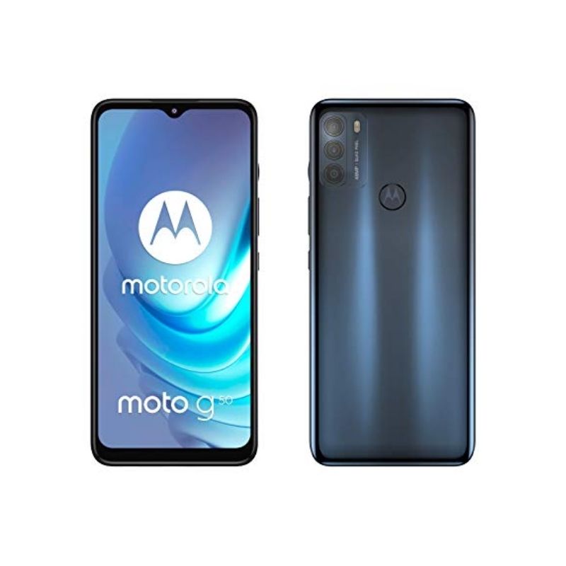 Celular Motorola Moto G50 color Azul, Memoria de 128GB de ROM y 4 GB RAM, procesador Octa Core 2,2Ghz, Camara frontal de 48 Mpx+2Mpx+2Mpx y frontal de 13 Mpx, Android 11, bateria de 5000 mAh.