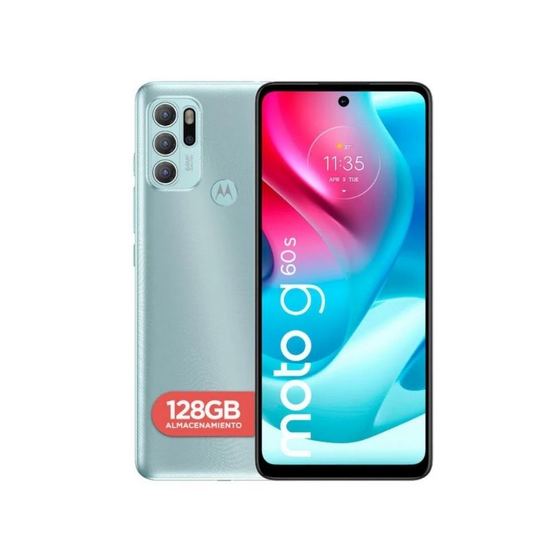 Celular Motorola Moto G60S color Aqua, Memoria de 128GB de ROM y 6 GB RAM, procesador Octa Core 2,0Ghz, Camara frontal de 64 Mpx+8Mpx+5Mpx+2Mpx y frontal de 16 Mpx, Android 11, bateria de 5000 mAh.