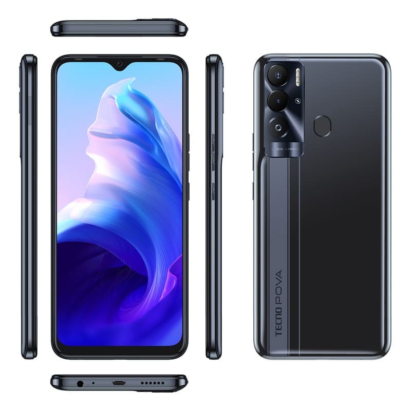 Celular Tecno Pova Neo 64GB/4GB Negro: Pantalla 6.82 HD+, Camara Principal de 13Mpx +IA y frontal de 8Mpx, MemorIa de 64GB y Ram de 4GB, Procesador MTK G25 Octa core, Red 4G, Bateria 6000mah, Carga rapida 18W, Dual Sim.