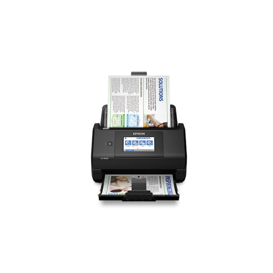 Escáner Epson ES-580W vertical en color dúplex de una sola pasada con alimentación de hojas/ Metodo Escaneo: Carro fijo y documento en movimiento/ Suministro de papel Alimentación Manual (hacia abajo)/ Sensor Optico: 600 dpi Color CIS/ Resolución Escaneo: Main: 600 dpi , Sub: 600 dpi (mechanical step is 600 dpi)/ Resolución de salida: 50 – 1200 dpi/ Profundidad Bits Color Bit Depth In: 30-bit, Out: 24-bit, Grayscale Bit Depth, In: 10-bit/ Fuente de Luz: RGB 3 Colors LED/ Area Maxima de Escaneo: 21.6 x 609.6 cm/ Tamaño de Documentos: Separation feeding: Portrait: Legal / Letter / A4 / Executive / B5 / A5 / B6 / A6, etc. Landscape: business card, postcard, etc. Long paper, folding paper (A3/B4, etc. with carrier sheet), envelope, PL card, carrier sheet, etc. Minimum size Main 50.8mm X Sub 50.8mm Maximum size Main 215.9mm X Sub 6096mm/Thickness: 27 – 413 g/m2/ Posición de ajuste de papel: Ajuste boca abajo y en el centro (ambas guías laterales se pueden operar simultáneamente)/Capacid