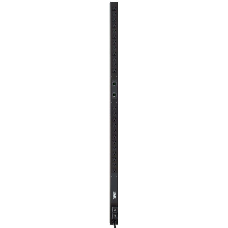PDU Monofásico con Medidor Digital de Corriente, 30A 120V, Instalación en Rack Vertical 0U, 24 tomacorrientes NEMA 5-15/20R, clavija de alimentación NEMA L5-30P