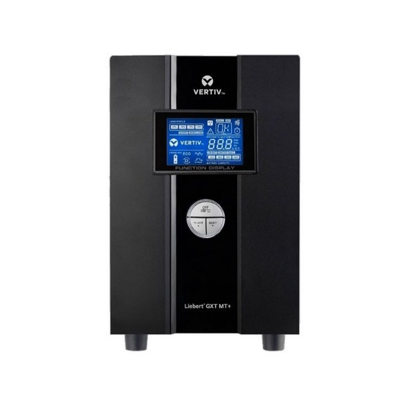 UPS Liebert de montaje en torre. Capacidad 3KVA/2.7KW. -4 Minutos de respaldo carga completa – 11 Minutos a media carga – Frecuencia 60 Hz, 1 Fase + Neutro + Tierra. En línea. Batería incluida. No requiere transformador. Liebert® GXT MT+ ofrece la mejor protección de energía en su clase para aplicaciones críticas con el uso de la verdadera tecnología de doble conversión en línea. La Liebert® GXT MT+ cuenta con especificaciones integrales que proporcionan un mayor nivel de disponibilidad para los equipos informáticos. Satisface los criterios electromagnéticos de seguridad y estándares de compatibilidad al tiempo que ofrece monitoreo inteligente y funciones administrativas de red.